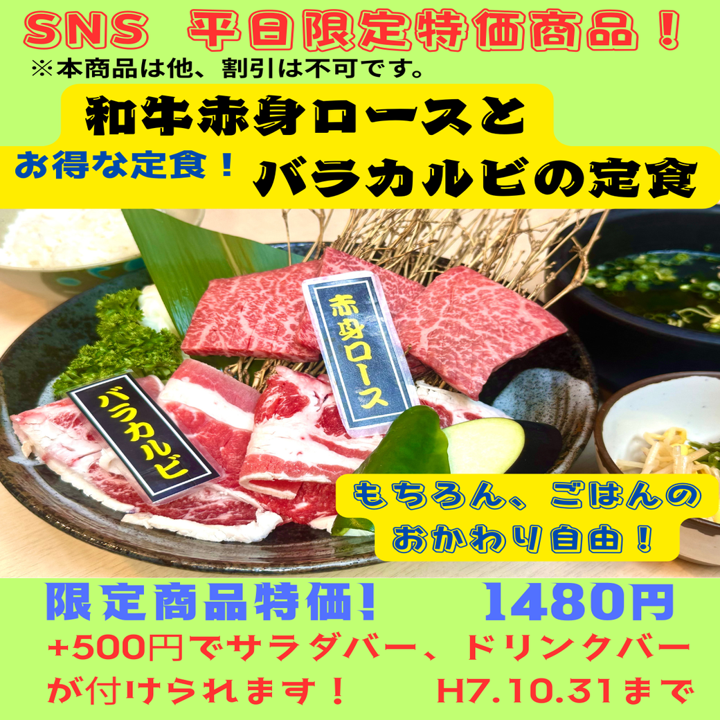 今月は和牛赤身ロースとバラカルビのコンビ定食!